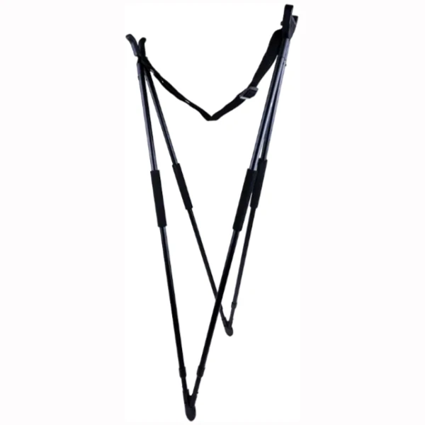 De fem høydejusteringstrinnene gjør det enkelt å tilpasse støtten etter terreng, kroppshøyde og skytestilling. Gummiføtter sørger for godt feste mot underlaget, og bærereimen gjør transporten enda enklere.