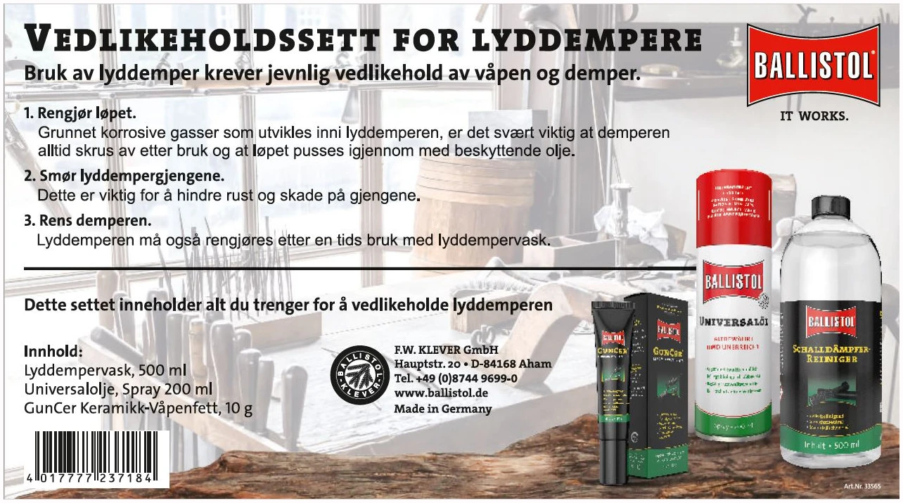 Ballistol Lyddemper Vedlikeholdsett (1/5)