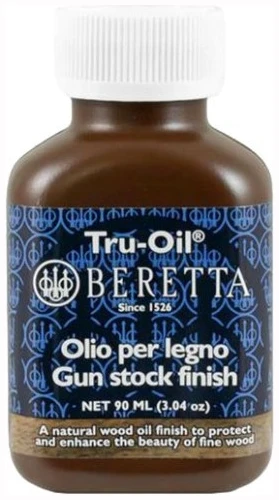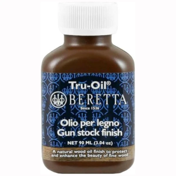 Tru-Oil er en unik blanding av linfrøolje og andre naturlige oljer, spesielt utviklet for å trenge dypt inn i treverket, tørke raskt, og gi en slitesterk overflate. Den er ideell for å vedlikeholde, fylle porene og beskytte våpenskjefter.