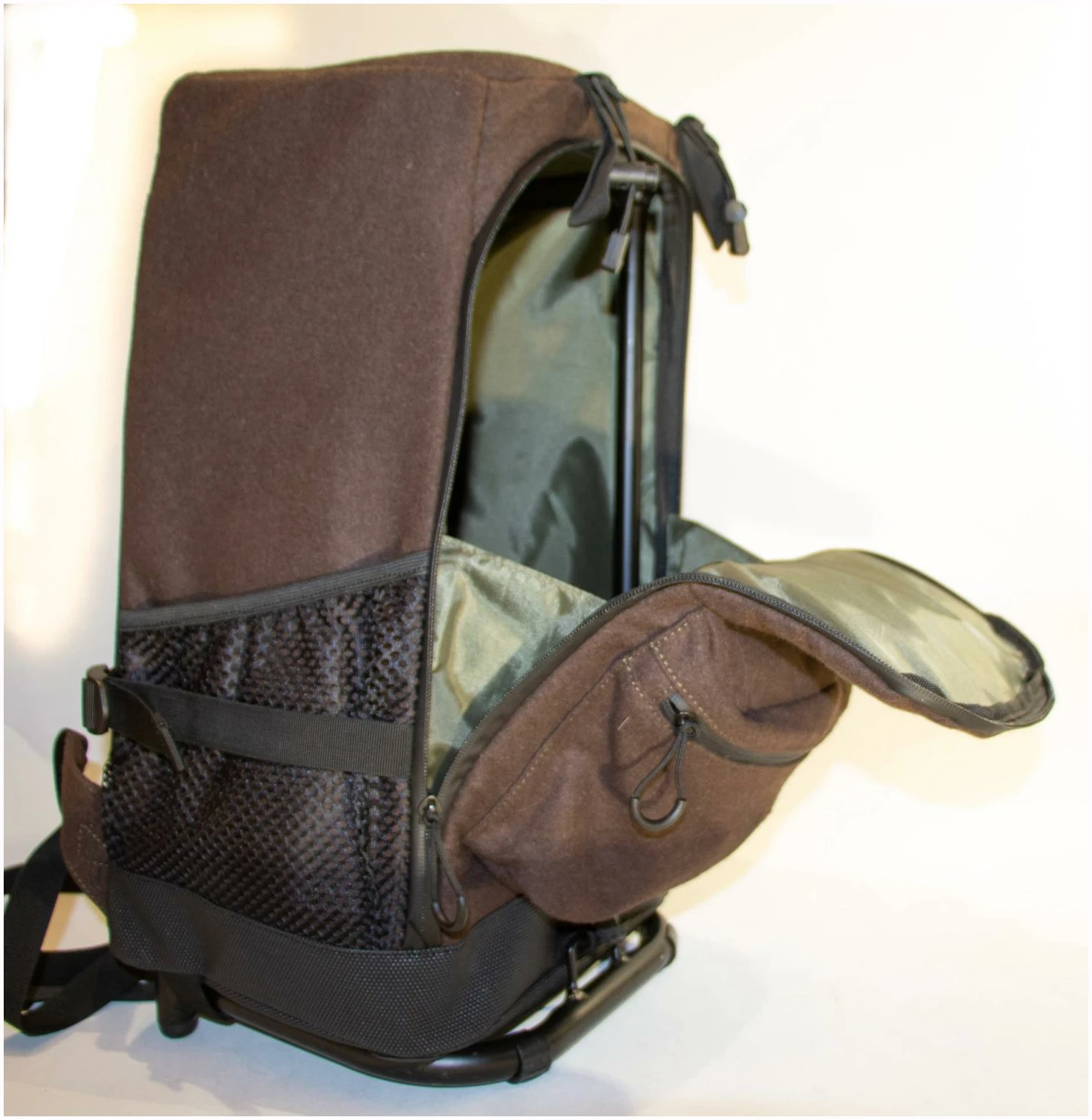 Lekker og praktisk stolsekk i lydsvakt loden materiale. Super sittekomfort. Brede skulderremmer i sterkt ventilationsnett for økt komfort. Et stort hovedrom og et front rom, samt to sidelommer. Sterk stol som tåler sidevekt på 200 kg. Raincover.
