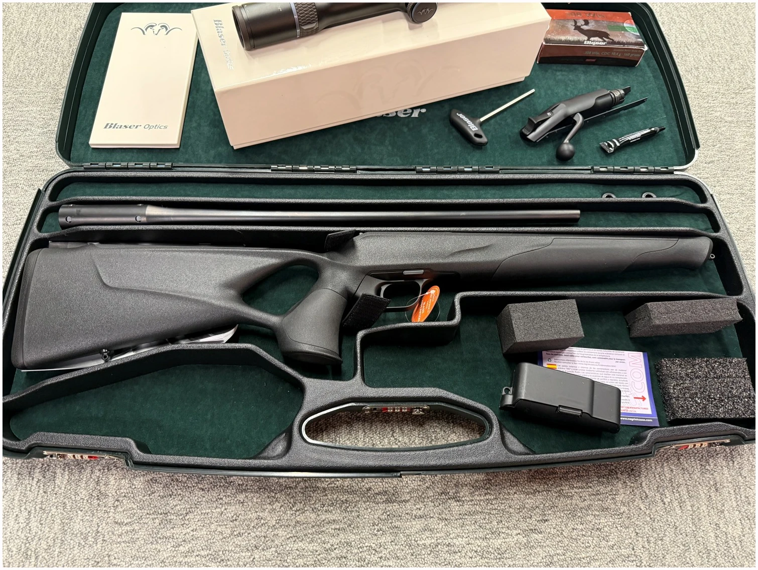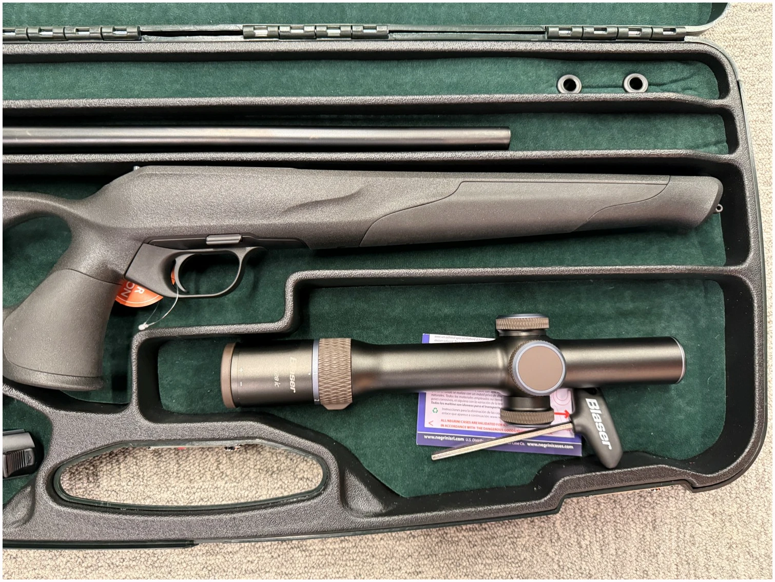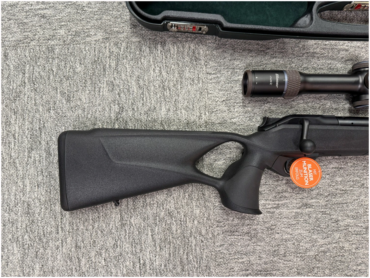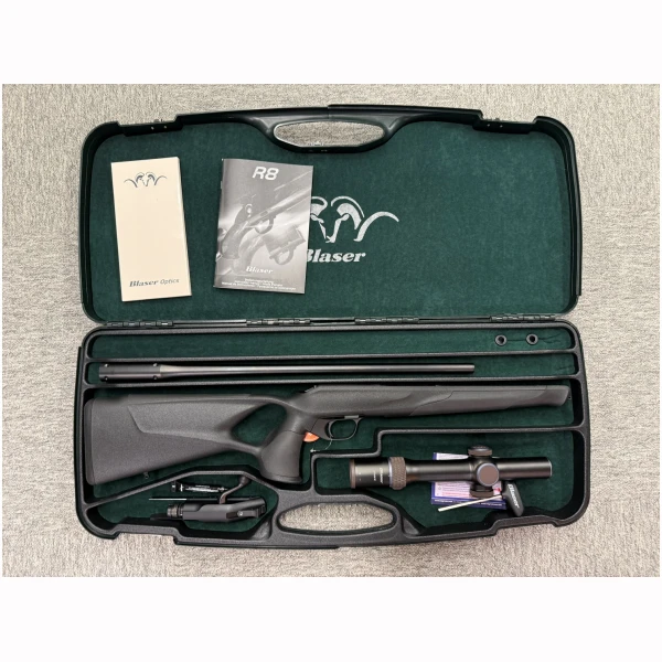 Pakken leveres med Blaser B1 1–7×28 IC montert på original Blaser skinnemontasje. Dette gir et ekstremt lavt og stabilt oppsett, perfekt for både drivjakt og smygjakt. Optikken gir krystallklart bilde, rask målanskaffelse og høy pålitelighet i skumring.
