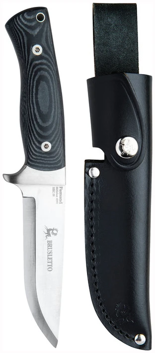 Dette er en kraftig fulltangekniv med rett slipt knivegg med fingervern. Kniven passer perfekt som jaktkniv/ turkniv/fiskekniv pga knivbladet har en liten drop-point profil. Kniven er velbalansert og ligger svært godt i hånden ved bruk. Sandvikstål i knivbladet som er ekstra holdbart. Micarta skaft, som er et kunstig kunststoff som er svært hensiktmessig utformet og holdbart.