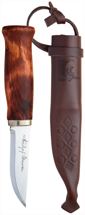 Brusletto Kniv Nansen er en robust og pålitelig tollekniv som dekker mange bruksområder – fra jakt og friluftsliv til daglig bruk i naturen. Kniven har rettslipt egg i høykvalitets Sandvik-stål som gjør den enkel å slipe opp igjen, og et elegant oljet masurbjørk-håndtak som gir godt grep og et tradisjonelt uttrykk.