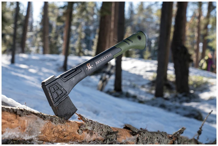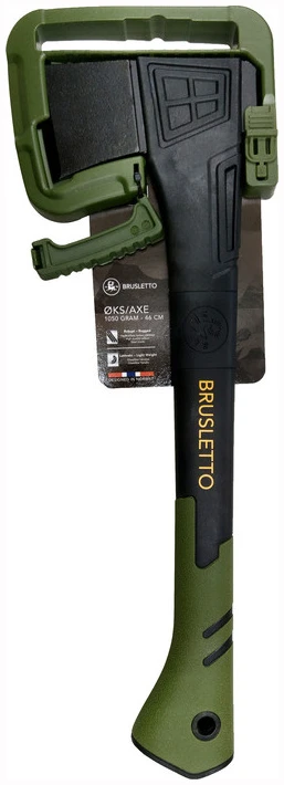 Øksen kan enkelt puttes i sekken, da den har en kompakt beskyttelsesklips som beskytter eggen.