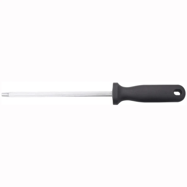 Slipestål med plastskaft. Vi anbefaler å bruke slipestålet for å vedlikeholde knivene. Hvis du effektivt skal vedlikeholde knivene dine før bruk, så er strykestål et godt alternativ. Stryk kniven meget langsomt i en vinkel på 15-20 grader. Det er viktig at du gjør det langsomt og at du stryker «eggen» i ett og samme strøk. Du bør gjøre dette 4-5 ganger, på hver side av knivbladet