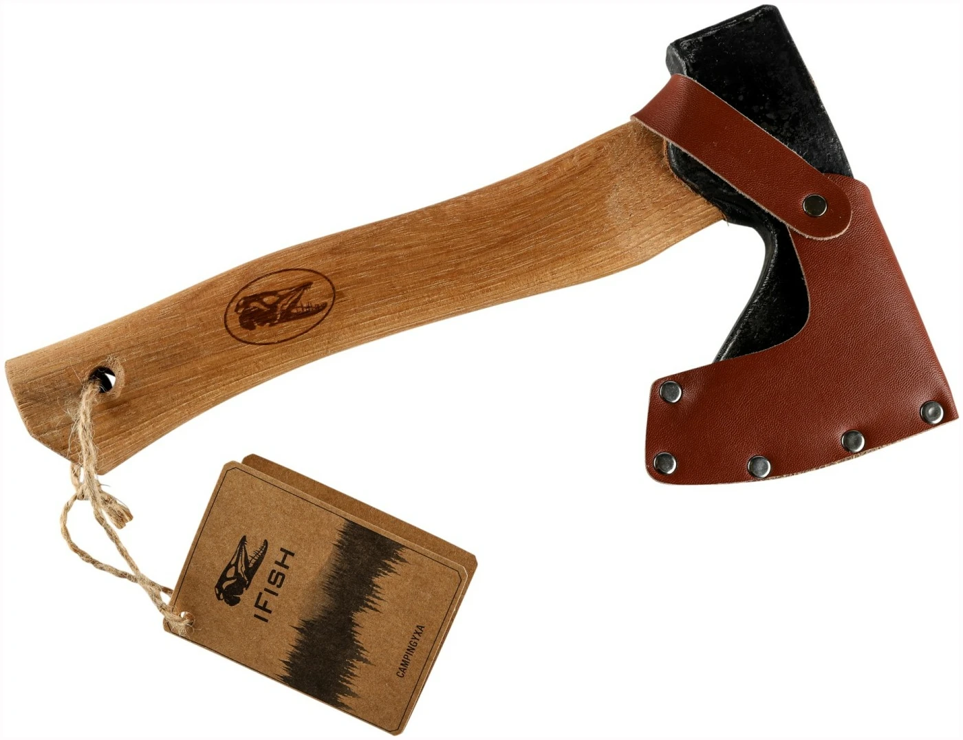 IfishIFISH Campingøks er en praktisk og solid turøks utviklet for friluftsliv, camping og leirbål. Med et kort skaft på 26 cm tar øksen minimalt med plass i sekken, samtidig som det 450 gram tunge økshodet gir nok kraft til effektiv vedhogst.