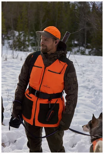 Pointer Chevalite Foldover Cap er en vanntett og vindtett caps. Pullen har en fold-over konstruksjon med en tydelig oransje signalfarge. Denne fold-over funksjonen gjør at du blir godt synlig for jaktkameratene dine. Utsiden av capsen er laget av børstet og stretchy resirkulert polyester som er både vind- og vanntett samt PFAS-fri. Alle sømmer er tapet. Denne jaktcapsen har utfellbare vind- og vanntette øreklaffer som holder deg varm på ørene selv når det blåser kaldt. På siden av capsen finnes det et knapphull for en grankvist, og den har Chevaliers logo brodert midt foran.