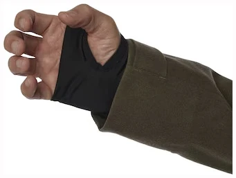 Foran på jakken er det en stor magelomme som lukkes med en vannavvisende toveis glidelås. Inni magelommen er det to mesh-lommer hvor du kan oppbevare mindre ting som GPS, telefon eller nøkler. I bunnen av magelommen er det et dreneringshull som gjør at eventuelt vann som kommer inn i lommen, raskt renner ut. Magelommen fungerer også som en varme lomme; på sidene av lommen er det glidelåser, åpner du dem, kan du varme hendene mellom kroppen og magelommen.