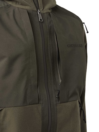Pointer Pro Chevalite Jacket Men er en smidig trelags jaktjakke laget av børstet og stretchy resirkulert polyester. Denne jakken er vanntett og vindtett, med en vannsøyle på 20 000 mm og pusteevne på 20 000 g/m²/24h. Plaggkonstruksjonen, kombinert med det vind- og vanntette PFAS-frie Chevalite-membranet og tapede sømmer, sikrer at du holder deg tørr i regnvær. Vannavvisningen på dette materialet er også PFAS-fri. Kontraststoffet på skulder- og brystpartiene er ekstra vannavvisende.
