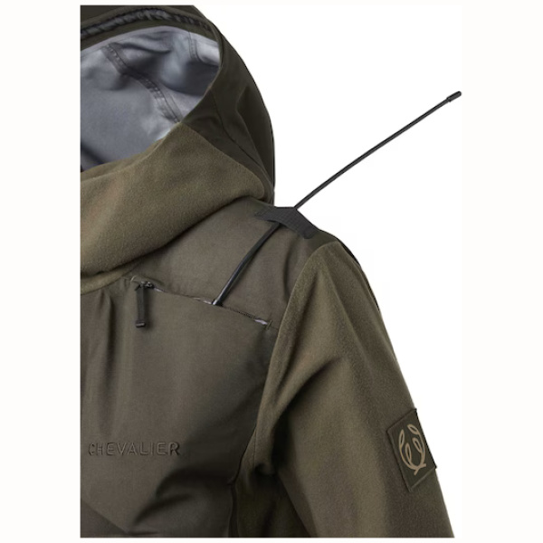 Pointer Pro Jaktjakke har mange praktiske funksjoner, som antenneløkker i et svært slitesterkt materiale på hver skulder. På brystet sitter doble radiolommer og to romslige glidelåslommer. På innsiden av radio- og brystlommene finnes det gjennomganger for ledningen til øreproppen. Dette gjør at du kan føre ledningen på innsiden av plagget, slik at den ikke blir våt eller henger i veien foran ansiktet ditt.