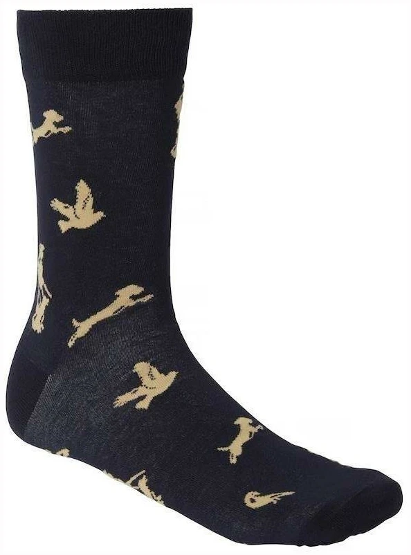 Pomeroy-sokken er laget av fin bomullskvalitet. De lange fibrene gir en eksklusiv kvalitet og gjør sokken myk og behagelig. Med Promeroy blir jaktantrekket ditt komplett. Jacquard-strikk i tre mønstre: fasan, rev og jaktscenario med hund og jeger.