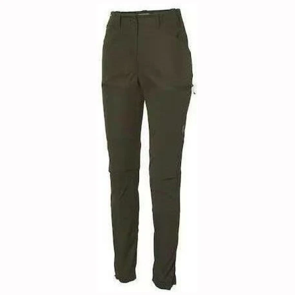 Spey Stretch Pants Women er en stretchy, stille og smidig jaktbukse for damer. Den er laget av en blanding av to hurtigtørkende og smussavvisende materialer. Ripstop-materiale med 4-veis stretch på knærne og setet gir en meget smidig og fleksibel damebukse. Den ergonomiske passformen og den elastiske midjen, kombinert med det smidige materialet, gir deg maksimal bevegelsesfrihet. Denne friluftsbuksen har en feminin passform og Chevaliers kledelige saddle-back snitt. Buksen har to benlommer med belg. Lommene lukkes med glidelås, og inne i den ene lommen er det en innerlomme hvor du for eksempel kan oppbevare mobilen. På utsiden av lårene er det meshfôrede ventilasjonsåpninger med toveis glidelås. Benavslutningene er elastiske og justeres med borrelås. En støvelkrok er skjult på innsiden av folden foran. Enkelt sagt, en perfekt bukse for aktive aktiviteter som jakt, hundetrening, vandring eller arbeid i skog og mark.