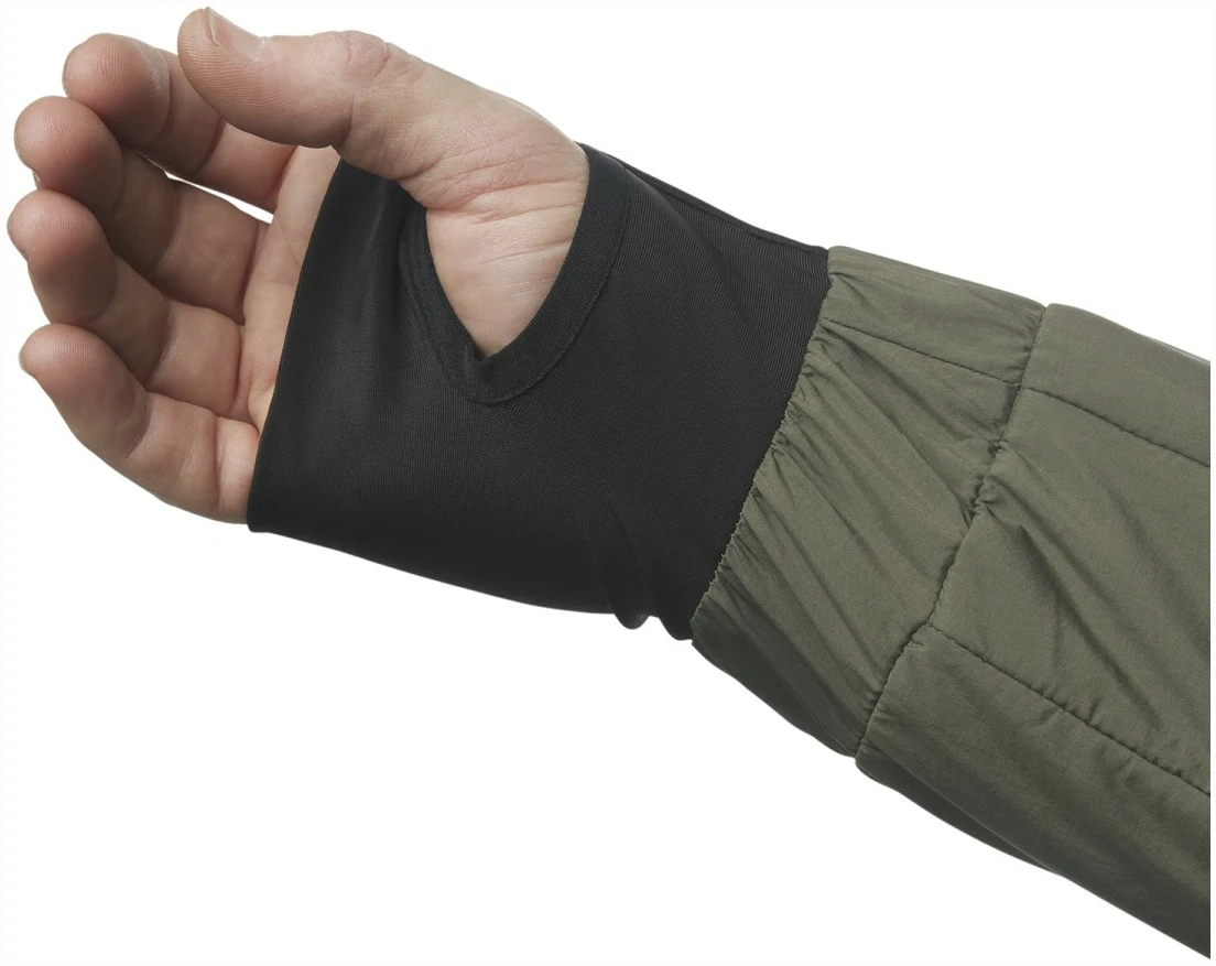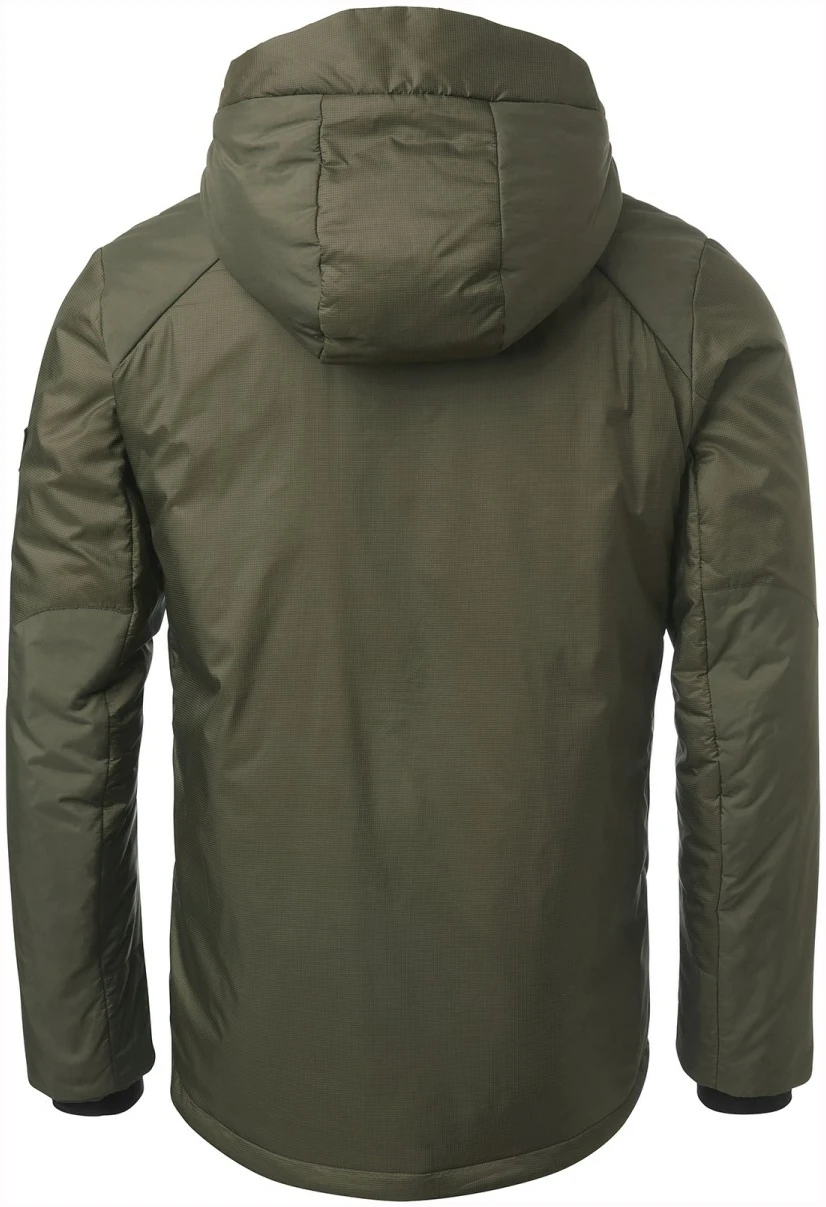 Jakken har et ekstra lag med forsterkning på skulderpartiene og ved håndleddene. Den har også en romslig hette med toveis justering som får hetten til å sitte tett rundt hodet med et enkelt enhåndsgrep. Jakken kan justeres i falden nederst, og ved håndleddene er det elastiske mansjetter med tommelhull og en smart forlengingsfunksjon som bidrar til ekstra bevegelighet. Lettvektsjakken kan lett pakkes sammen i sin egen hette, slik at den tar mindre plass i oppakningen. Den myke vatteringen gjør dessuten at den da kan brukes som pute. Vekt: 560 g i størrelse Medium.
