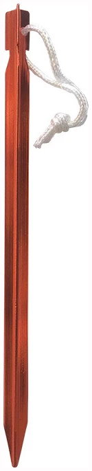 Teltplugger i oransje anodisert aluminium med trekantet design som gjør dem praktisk talt umulig å ødelegge. Allsidig nok til å fungere med nesten alle slags telt og solid nok til å vare i mange år. Har et hakk på toppen til feste av barduner; vedlagt trekksnor i nylon gjør dem enkle å trekke opp.