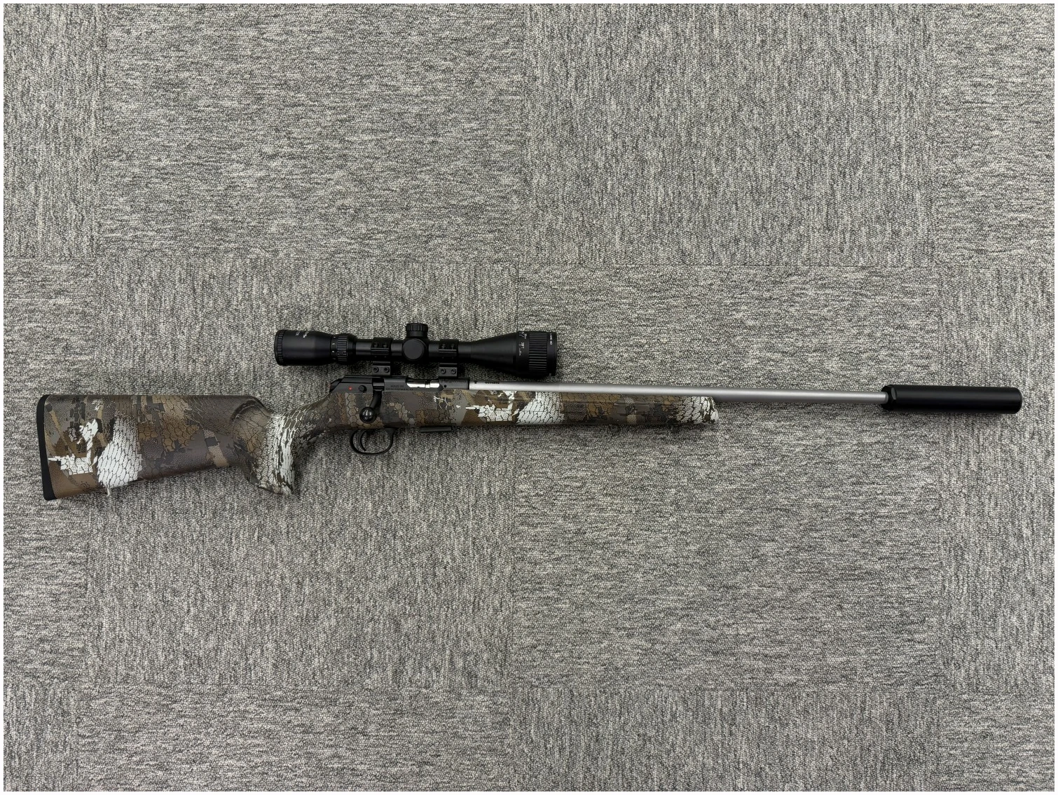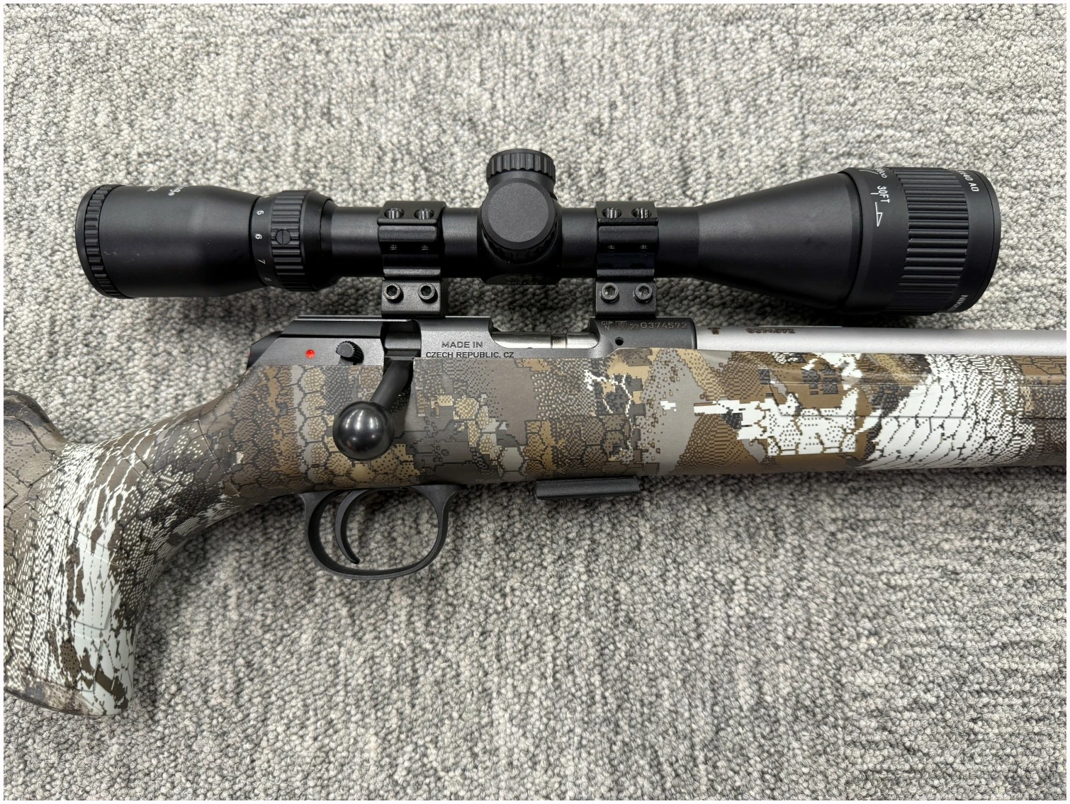 CZCZ 457 Camo Stainless er en robust og presis salongrifle, perfekt for småviltjakt og presisjonsskyting. Med rustfritt løp, kamuflasjefarget syntetisk stokk og gjenget pipe, er denne riflen optimal for norske jaktforhold.