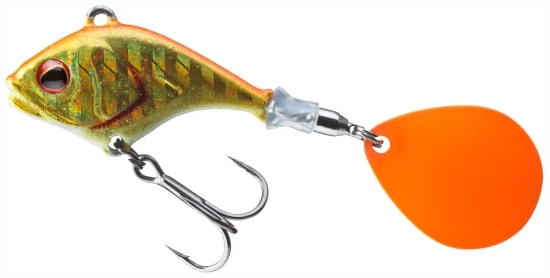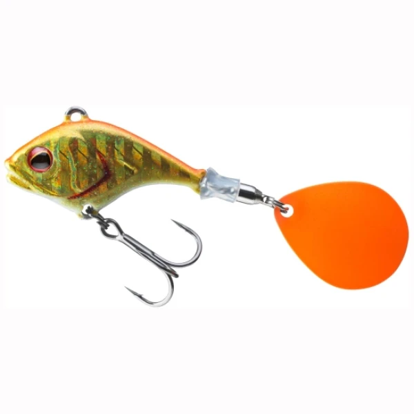 Det roterende spinnerbladet skaper sterke vibrasjoner og refleksjoner som tiltrekker rovfisk, mens jiggens kropp gir en naturlig og lokkende bevegelse.