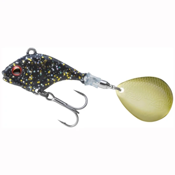 Det roterende spinnerbladet skaper sterke vibrasjoner og refleksjoner som tiltrekker rovfisk, mens jiggens kropp gir en naturlig og lokkende bevegelse.