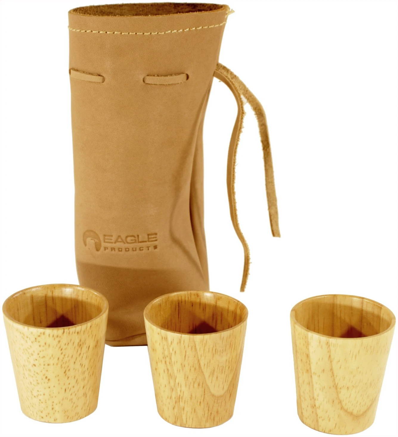 Eagle Products 3 stk drammeglass i tre i skinnpose
