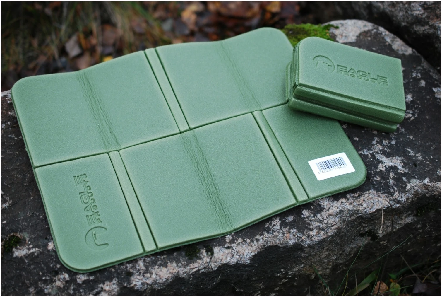 EAGLE Products’ unike 8-foldete sitteunderlag! Patentert sammenleggbar-løsning som foldes 8 ganger. Gjør at sitteplaten blir ekstra liten sammenlagt og går i jakkelomme og cargobukse. Lunende og behagelig å sitte på.