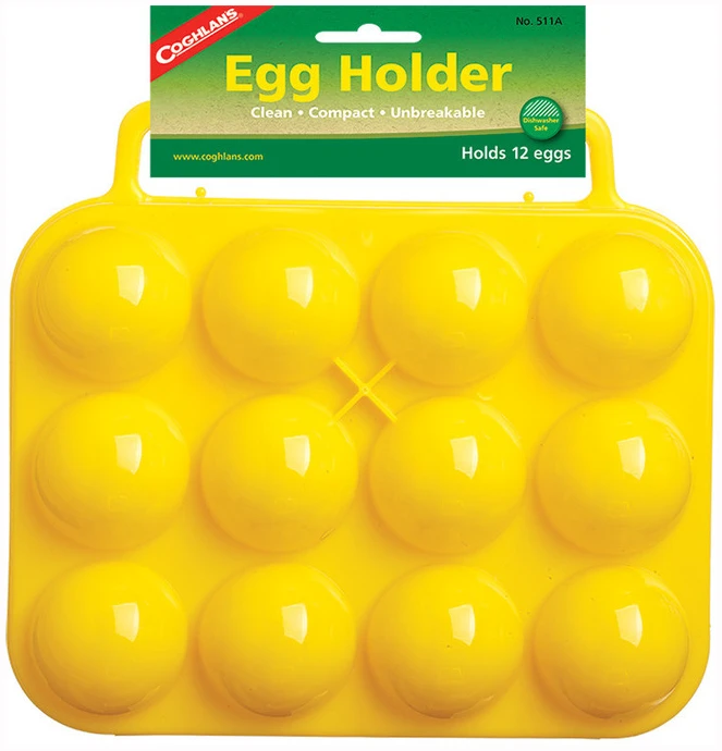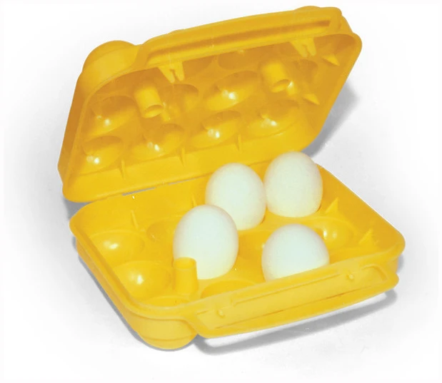 Eggholder laget av praktisk talt uknuselig plast. Støpte håndtak gjør den enkel å bære med seg. Passer til medium størrelse egg