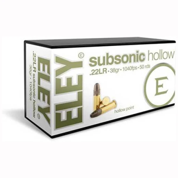 Eley Subsonic er en hul jaktpatron med redusert hastighet og nøyaktighet på nivå med blinkskyting. Dette hule prosjektilet tilbyr uovertruffen ekspansjon, noe som resulterer i kort gjennomtrengning med fremragende stoppevne.