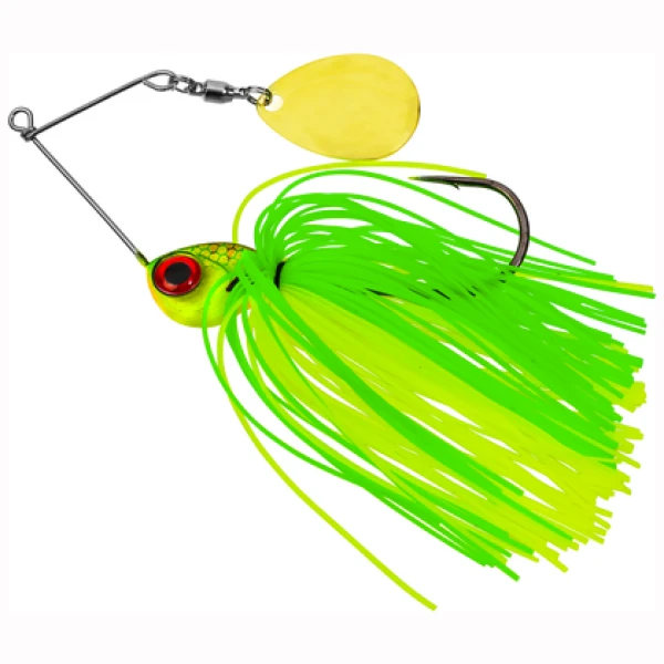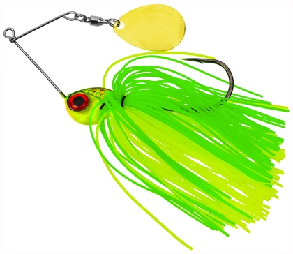 Til abbor-og gjeddefiske. Med det store øyet på hodet og den pulserende gummikjolen rundt enkeltkroken, blir det vanskelig for rovfisken å holde seg unna! Bøylen på spinnerskjeen holder vegetasjon borte, så du kan kaste rett inn nøkkeroser, gress og siv uten å sette deg fast.