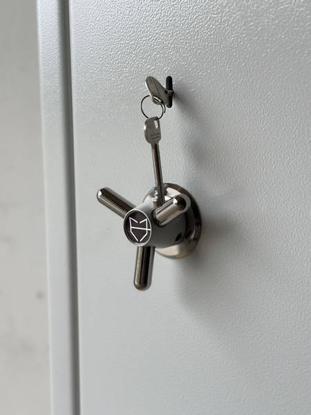 Utvendig hengslet dør som gjør at den enkelt kan frigjøres ved inntransport og installasjon. Dette letter vekten med ca. 30%.