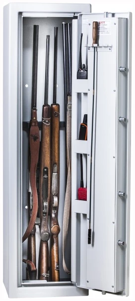 Et av Norges billigste våpenskap med plass til opptil 7 våpen? Denne utgaven er en FIGHTER med fokus på å være best på pris! FG godkjente Franz Jäger Våpenskap er beregnet for opptil 7 våpen med max lengde 120cm. Skapene er godkjent med FG nummer 1050/15. Testet og godkjent etter de strengeste krav til FG godkjenning av Sintef i Trondheim. Alle skap i serien av Franz Jäger Våpenskap har en meget kraftig konstruksjon med dobbelt falset overgang mellom dør og chassie. Skapene har i tillegg manganforsterkninger, VdS sertifiserte låser og FG 520 godkjenning. Skapene er designet på Sørumsand i Norge og produseres i Europa.