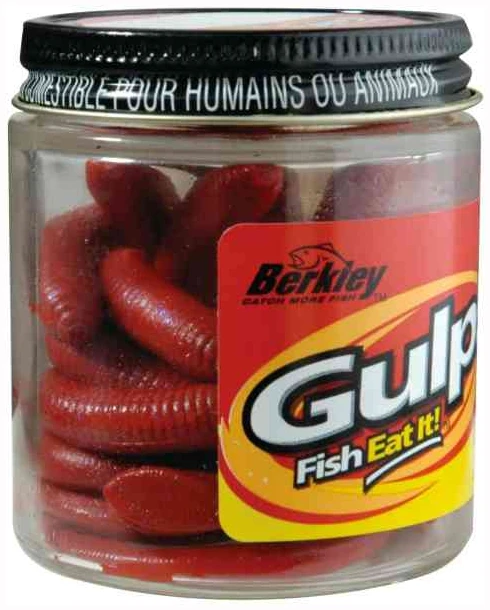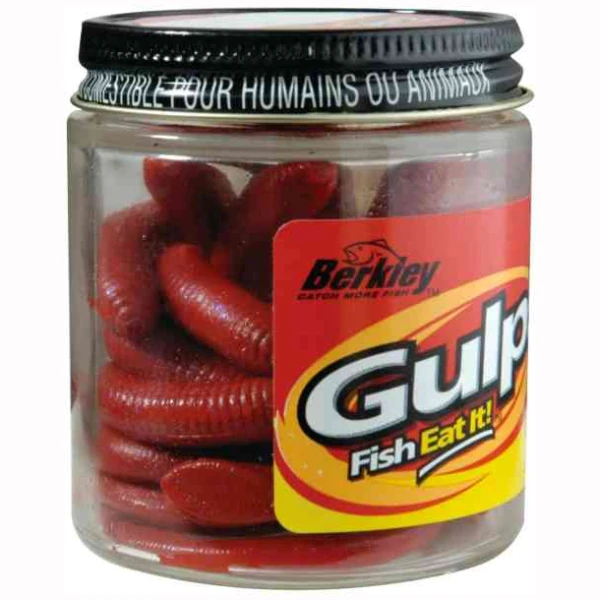 Berkley Gulp! Duggmark 15 cm Bloody – biologisk nedbrytbart kunstagn med ekstremt luktintensitet, perfekt til laksefiske og sjøørret. Fester seg lenge på kroken – ingen småfisk spiser agnet.
