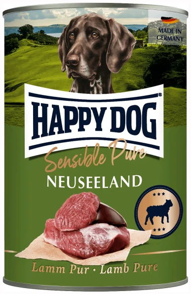 Happy DogHappy Dog Sensitive Pure Neuseeland våtfôr – vår førsteklasses kjøttbaserte mat er laget av 100 % verdifullt kjøtt sammen med innmat som hjerte, lunger og lever. Den inneholder også viktige vitaminer og mineraler. Kjøttet og innmaten kommer utelukkende fra lam*. Og selvfølgelig er våtmaten vår laget uten soya eller andre plantebaserte tilsetningsstoffer.