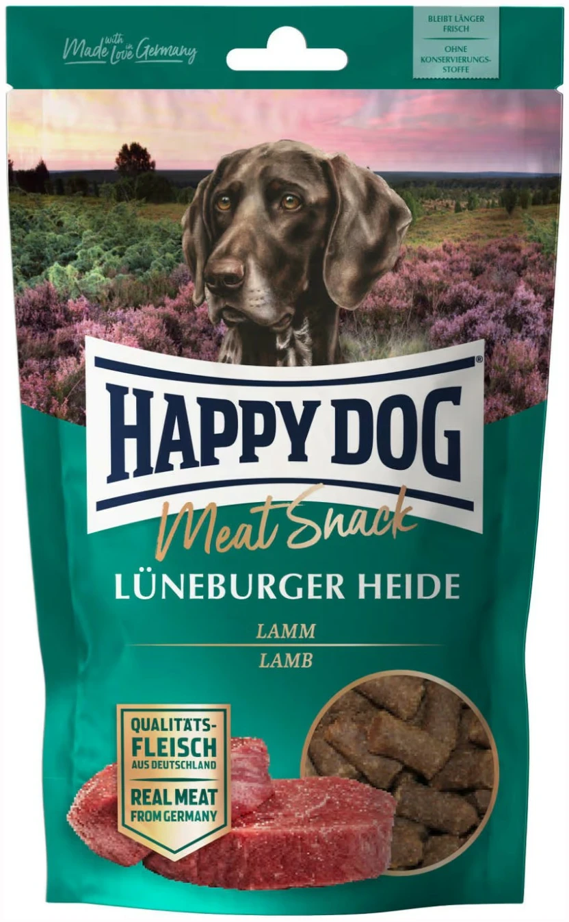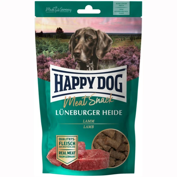 Happy DogHappy Dog Supreme Meat Snack Lam er en høykvalitets hundesnacks laget av skånsomt tørket lam fra Tyskland. Med 60% lammekjøtt og en kornfri sammensetning er dette en ideell godbit for hunder med sensitiv mage, allergier eller generell fôrintoleranse.
