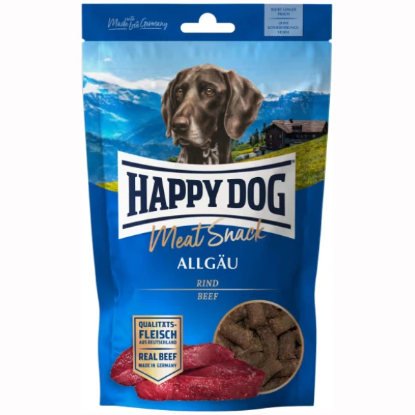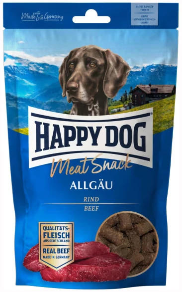 Happy DogHappy Dog Supreme Meat Snack Oksekjøtt er en ekstra smakfull hundesnacks laget av 60% skånsomt tørket, tysk storfekjøtt. Den kornfrie oppskriften gjør godbiten perfekt for hunder med sensitiv fordøyelse, intoleranser eller allergier.