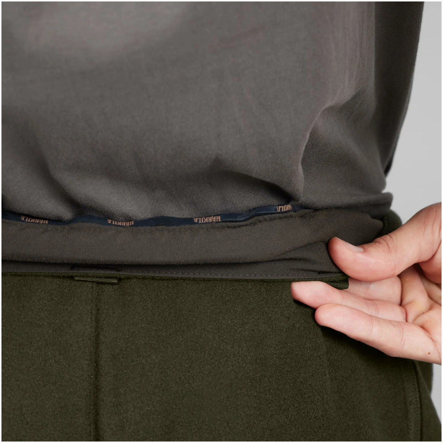 Metso Hybrid-buksen er en virkelig behagelig jaktbukse i en elastisk, svært lydløs ullblanding, perfekt til bukkejakt og jakt tidlig i høstsesongen. I tillegg til ullens naturlige temperaturregulerende og vannavvisende egenskaper har Metso Hybrid-buksen fått en vanntett membran fra knærne og ned. Det betyr at den egner seg for bruk i omskiftelig vær, og at du kan forsere vått terreng uten å bli våt. Samtidig har buksen svært god pusteevne og er veldig behagelig på.