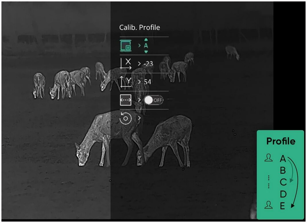 Høy bildekvalitet, vann- og støvtett (IP67), svært støtbestandig og fungerer imponerende i dårlig vær. Innebygget minne med 16 GB lagringskapasitet. Picture-in-Picture funksjon. Velg mellom 5 ulike retikler og 3 ulike farger. Clip-on kan også bygges om til en spotter om du ønsker dette.