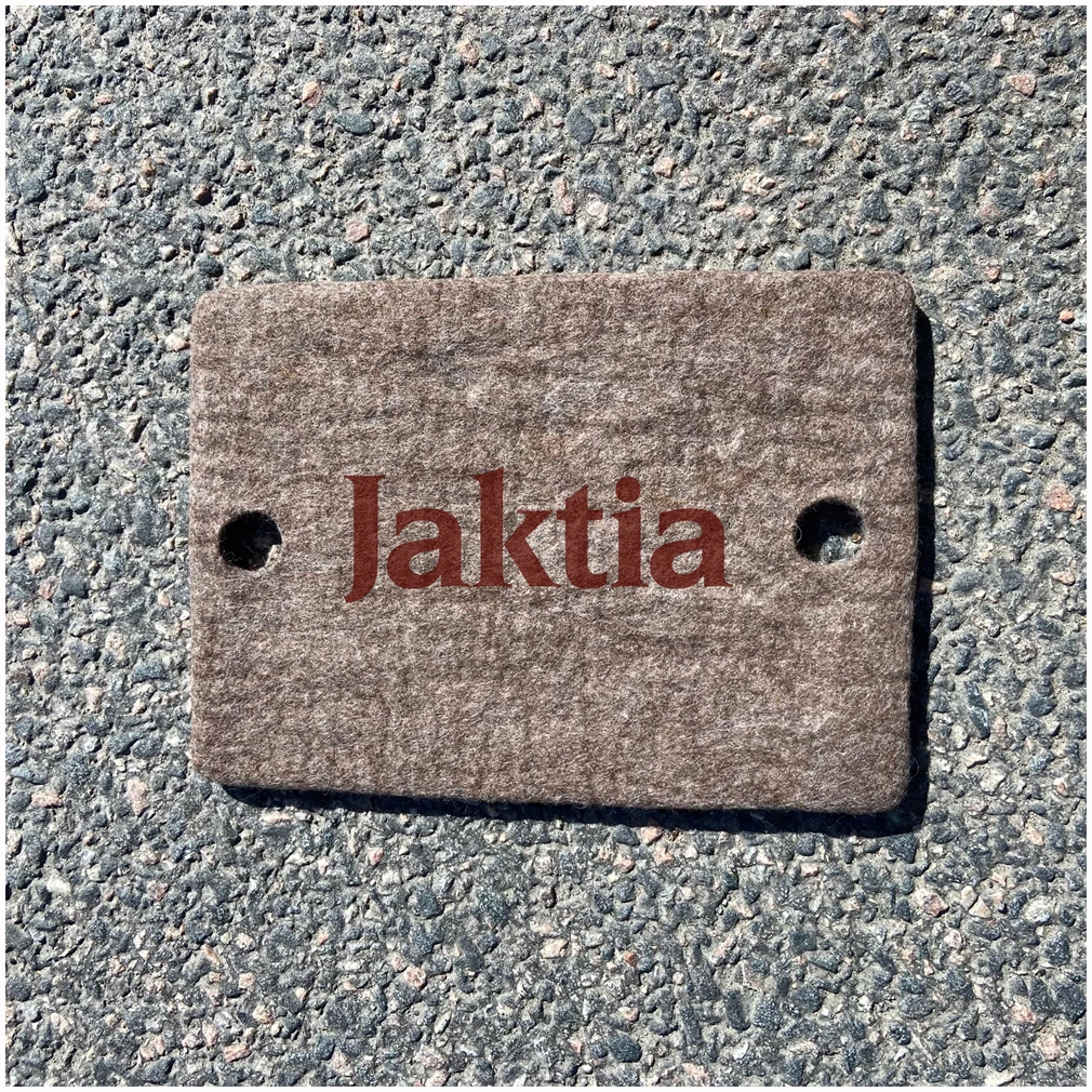 Sitteunderlag i ull med Jaktia-logo. Størrelse: 34×25