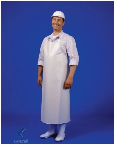 Landig slakteforkle i lett polyester med PVC-belegg gir effektiv beskyttelse mot blod, fett og fukt. Hygienisk, smidig og enkelt å rengjøre – perfekt til slakting, partering og kjøttforedling.