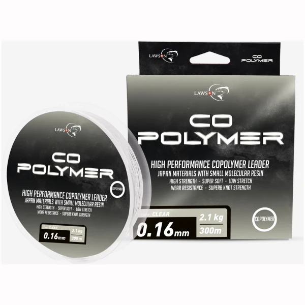 Lawson Copolymer er et førsteklasses snøre laget av copolymer med japanske kvalitetskomponenter. Snøret har lavt strekk, svært høy slitestyrke og suveren knutestyrke – perfekt for sportsfiskere som krever pålitelighet i alle situasjoner.