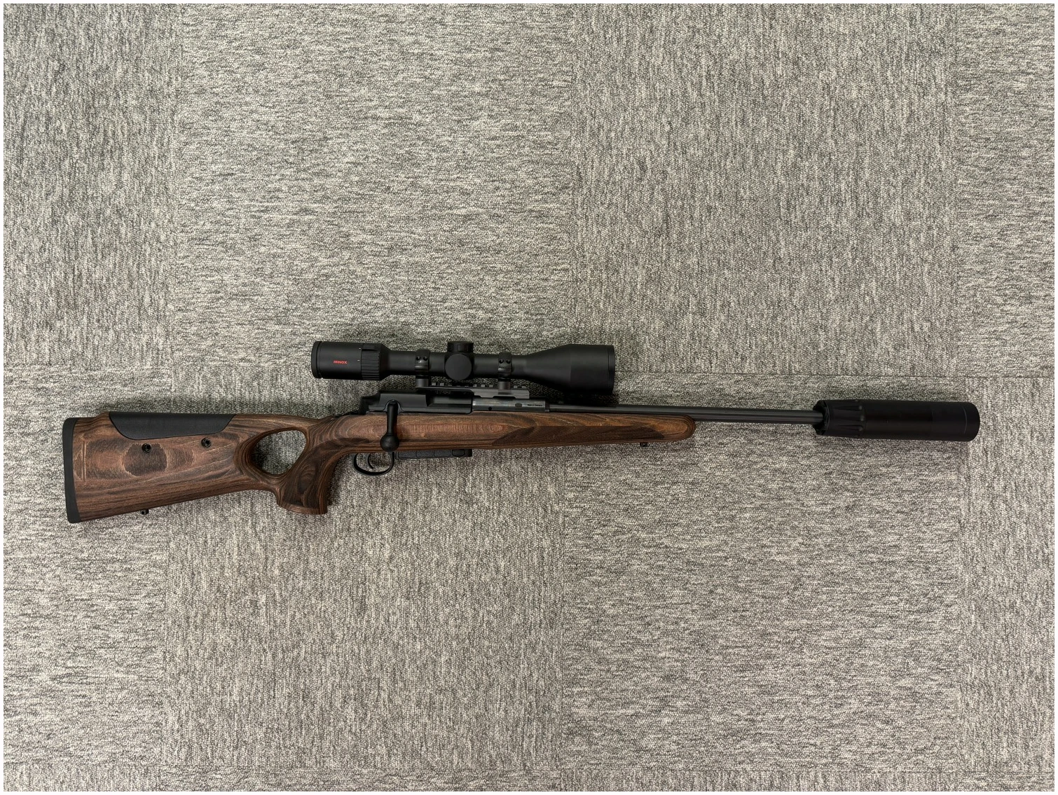 Mauser 25 Max rettrekker i .308 Winchester – komplett og gjennomført våpenpakke. Leveres med Vector Continental 2-12×50 ED (30 års garanti) riflekikkert og A-TEC V2 lyddemper. NB! Bilde er av en Mauser 25 Max med Minox kikkert.