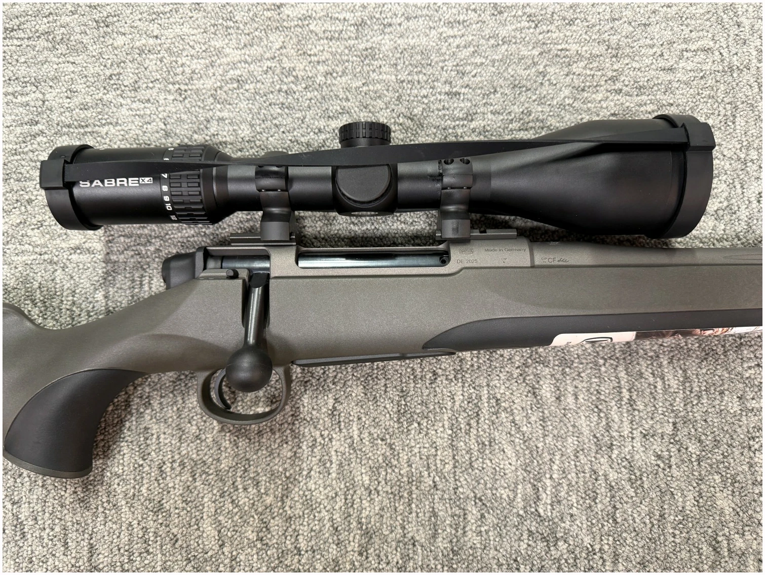 Mauser M18 Extreme Cerakote Tungsten i .308 Winchester – komplett og jaktklar våpenpakke. Robust og presis rifle med Cerakote-behandlet stokk og løp, levert med A-TEC V2 lyddemper og Sabre 3-12×56 riflekikkert. Et solid valg for jegere som krever driftssikkerhet i all slags vær.