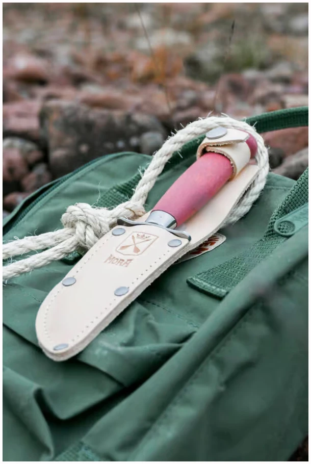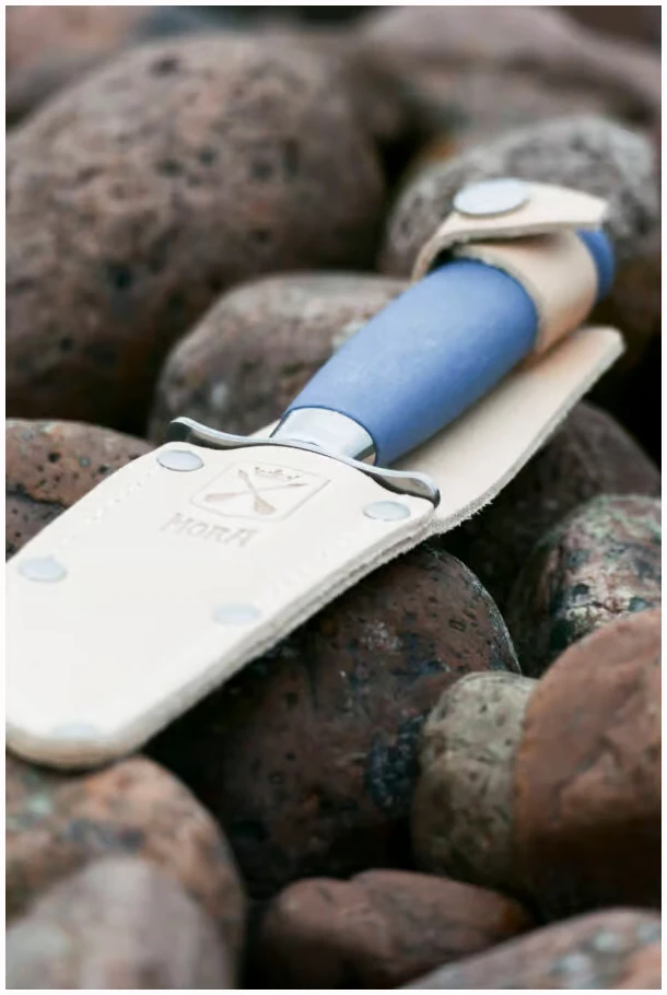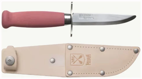 Scout 39 Safe (S) fra Mora er en utmerket første kniv for barn og unge. Med sikkerhetsfunksjoner som et spissløst blad og dobbel parerstang, er denne kniven optimal for unge naturutforskere.