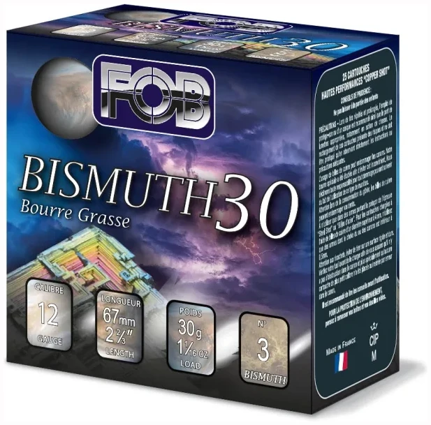 Nobel BISMUTH 12-67-3 30GR. (25 pk.) – Miljøvennlig hagleammunisjon uten bly, ideell for jakt i våtmarksområder. Kaliber 12, 67 mm, 30 gram. Ypperlig balanse mellom kraft og presisjon.