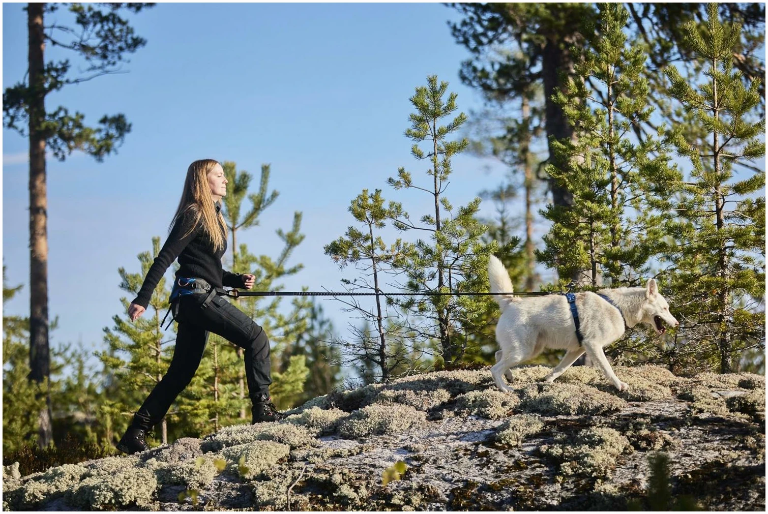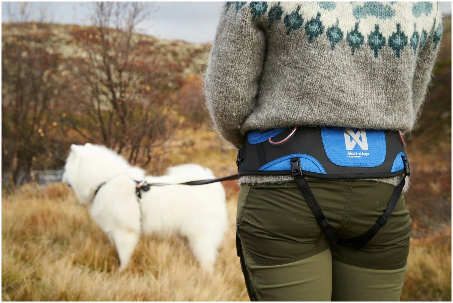 Pulk kan festes direkte i D-ringene på siden av beltet. Beltet har praktiske løkker hvor du kan feste kobbel, hundeposer og annet utstyr opp til 0,5 kilo. Trekkbeltet har en solid og sikker karabinkrok med skrulås for feste av hundens line. Kroken tåler en belastning på 300 kilo. Dersom det er viktig for deg å raskt kunne koble fra hunden, anbefaler vi å kjøpe Quick release snap hook med hurtigutløserfunksjon.