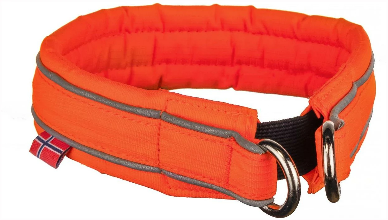 Vi har utviklet Safe collar for hunder som går mye løs i skogen. Det unike designet med strikkelement gjør at hunden lettere kommer seg løs om den skulle hekte seg fast. Du mister kanskje halsbåndet, men ikke hunden!