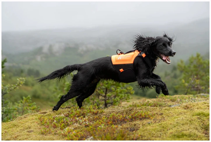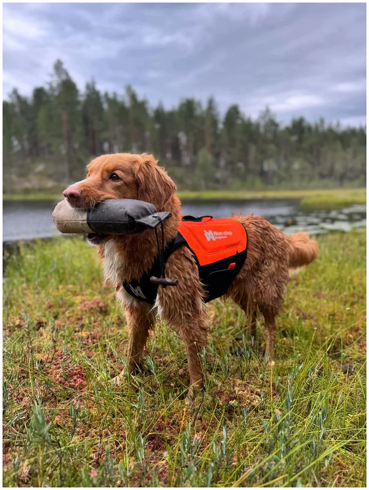 Festepunkt bak gir mulighet for kobbel eller langline, og en løkke på nakken gjør det mulig å feste små sporingsenheter eller lys. Den klare oransje fargen og integrert 3M™ refleks sørger for synlighet i tett vegetasjon og dårlige lysforhold – perfekt for jakthunder. Dreneringshull lar vannet renne ut når hunden er tilbake på land.