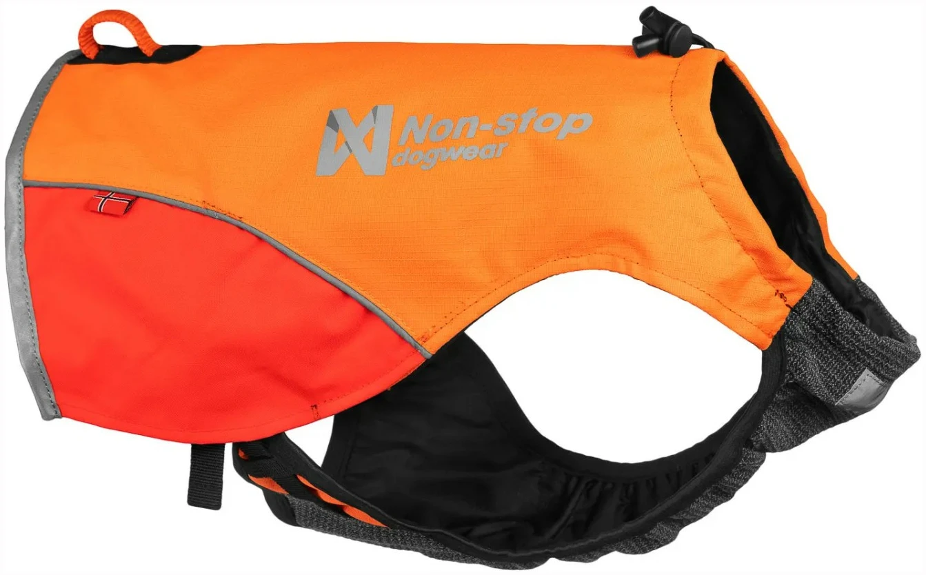 Et slitesterkt jaktdekken med brystklaff i aramidfiber og kraftig ripstop ytterstoff. Markeringsdekkenet har fargede felter på sidene som viser hvilken retning hunden står på lang avstand. Den kraftige oransje fargen, reflekstrykk og striper i 3M refleks gjør hunden godt synlig i terrenget. På ryggen er det en løkke for feste av sporline. Nederst har markeringsdekkenet spiler som sørger for at det holder fasongen.