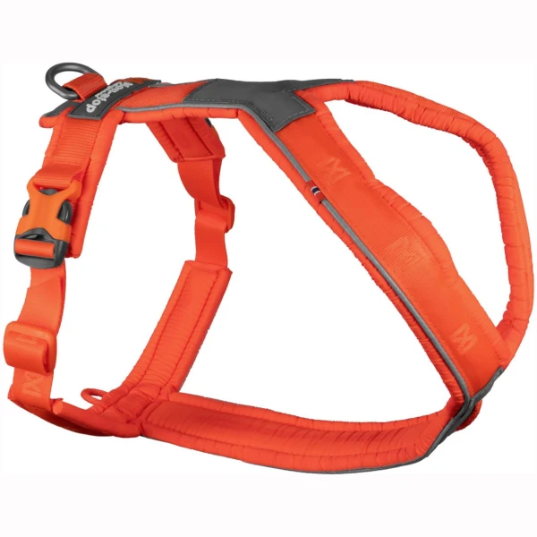 Line harness 5.0 er en svært allsidig hundesele, da den har flere punkter hvor du kan feste båndet. I tillegg til det vanlige festepunktet på ryggen, er det en festepunkt til sporline under brystet. Dermed kan hunden din bevege seg fritt uten å tråkke i sporlinen. Fra størrelse 3 og oppover er det et tredje festepunkt foran, som tilbyr mild antitrekk-kontroll.