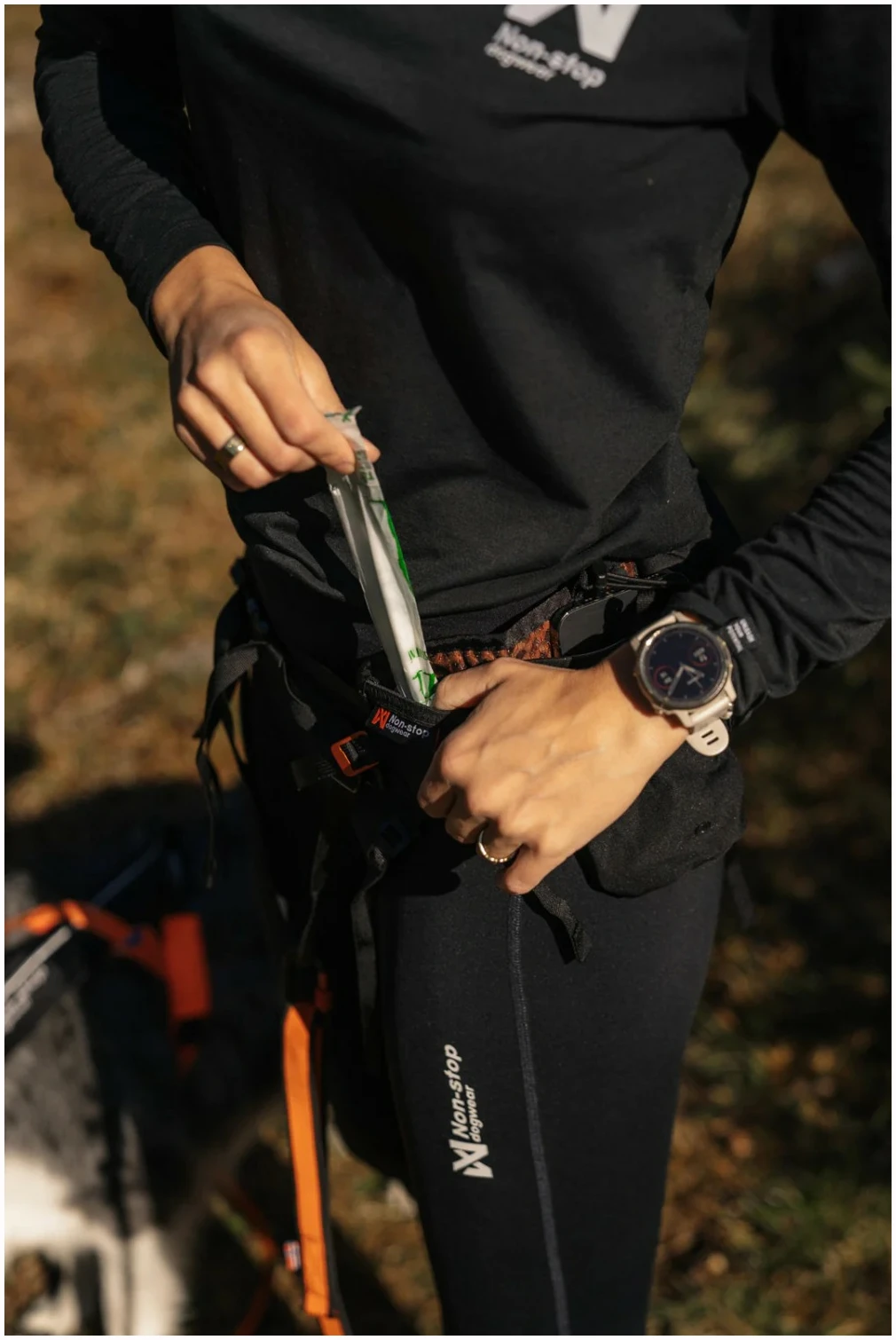Trail light belt er utstyrt med fem lommer som gir deg plass til alt du og hunden trenger: en 3L hovedlomme, to lommer til drikkeflasker og to mindre lommer foran.