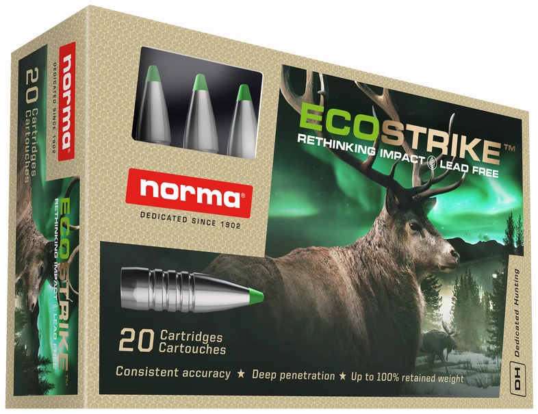 Ecostrike er utviklet for å gi enestående presisjon under alle forhold. Den kontrollerte ekspansjonen og høye restvekten gir en pålitlig oppførsel og dybdevirkning, på korte og lange hold. Presisjonen er optimalisert ved et unikt design og presise produksjonmetoder. Kulen har en forniklet overflate som minimerer mantlig i løpet.