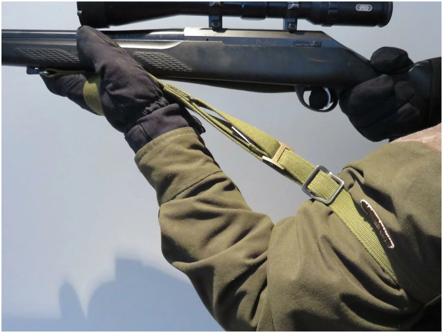 Lengden på reima, vinkelen på skytearmen, reguleres med den store spennen. Bruk god tid på riktig innstilling.