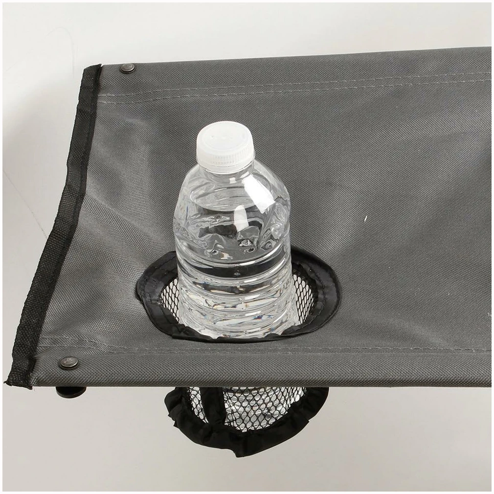 Senga er i én del, og den tar liten plass når den er slått sammen. Pack-Away Bed har solid stålramme og svært slitesterkt polyestermateriale. Smart løsning med et lite, avtakbart sidebord med koppholder. Dette er også praktisk til nøkler, bok, mobil o.l.